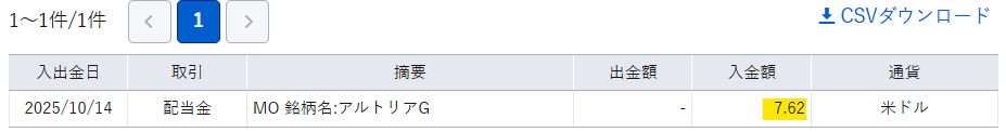以下の通り、アルトリア・グループから合計$7.62の配当金を頂きました。