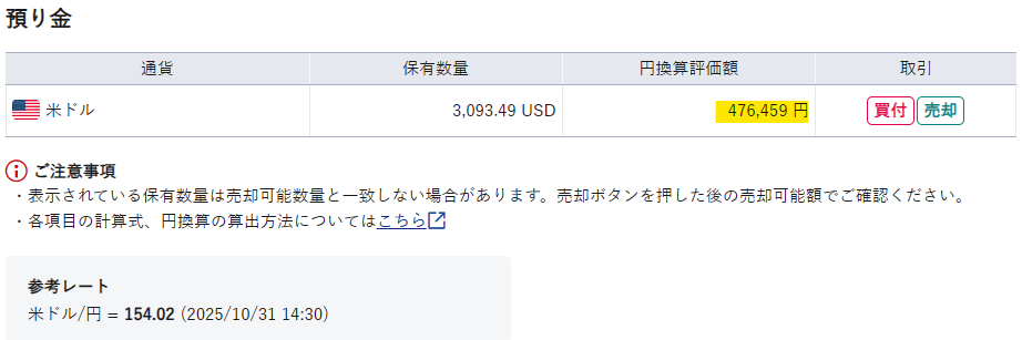 ✅ 米ドル:$3,263.58=502,651円(前月比:+$28.59=+22,917円)