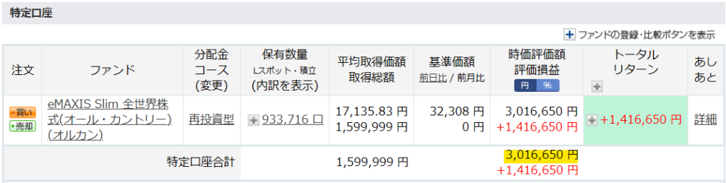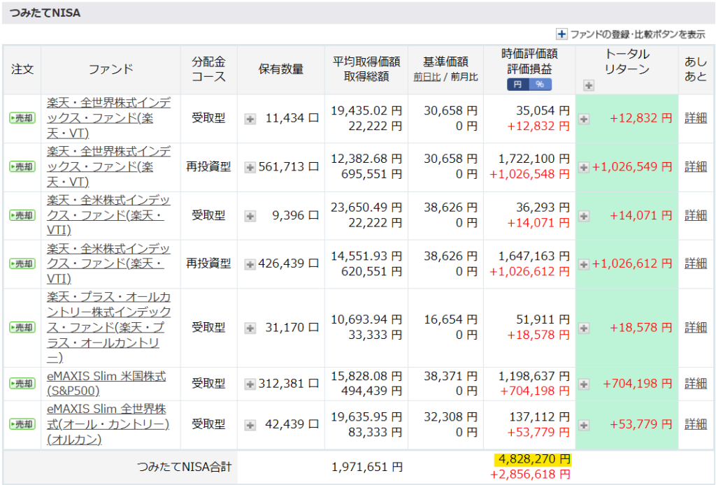 新NISAで投資しているファンドとトータルリターンは以下の通りです。