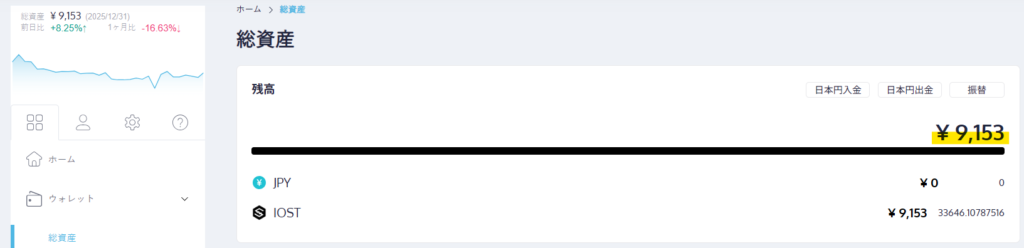 ✅ 評価額:9,153円(前月比:-1,664円)