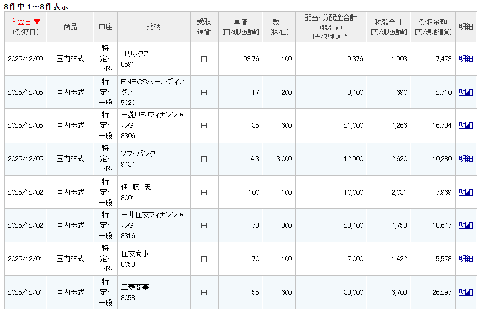 以下の通り、配当金を頂きました。合計95,688円です。あじゃーす!!